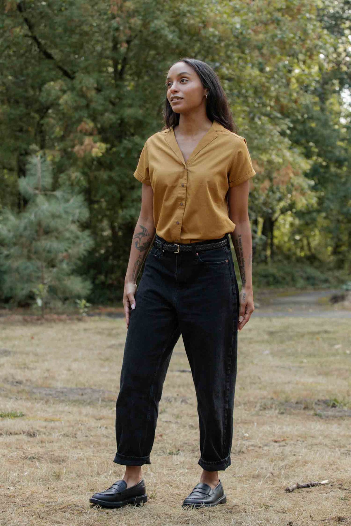The Innes is a short-sleeve button-up with a relaxed silhouette. Design details like a lapel collar and rolled sleeves mix modern design with a classic look. Just add a sweater and a great pair of pants or skirt, and this lightweight top is ready to be dressed up or down throughout the seasons.