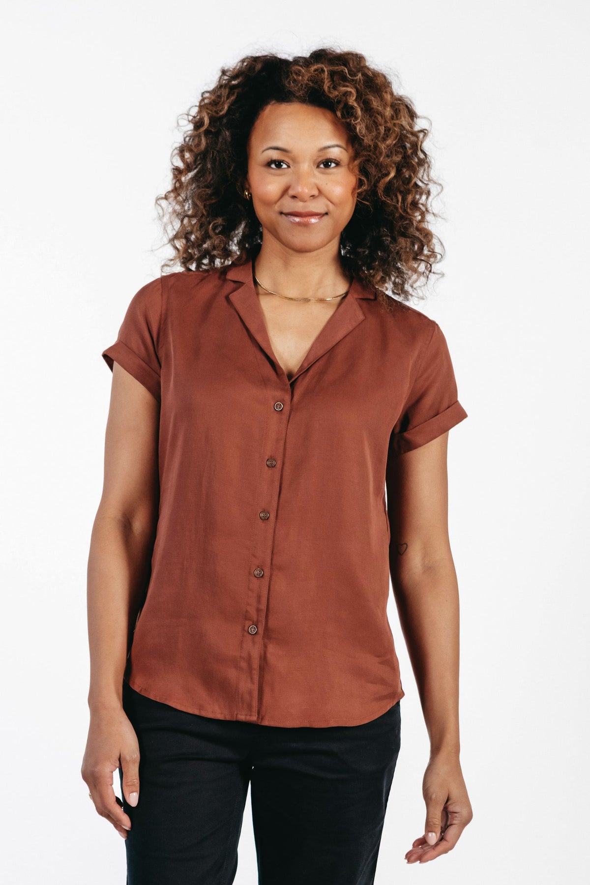 The Innes is a short-sleeve button-up with a relaxed silhouette. Design details like a lapel collar and rolled sleeves mix modern design with a classic look. Just add a sweater and a great pair of pants or skirt, and this lightweight top is ready to be dressed up or down throughout the seasons.