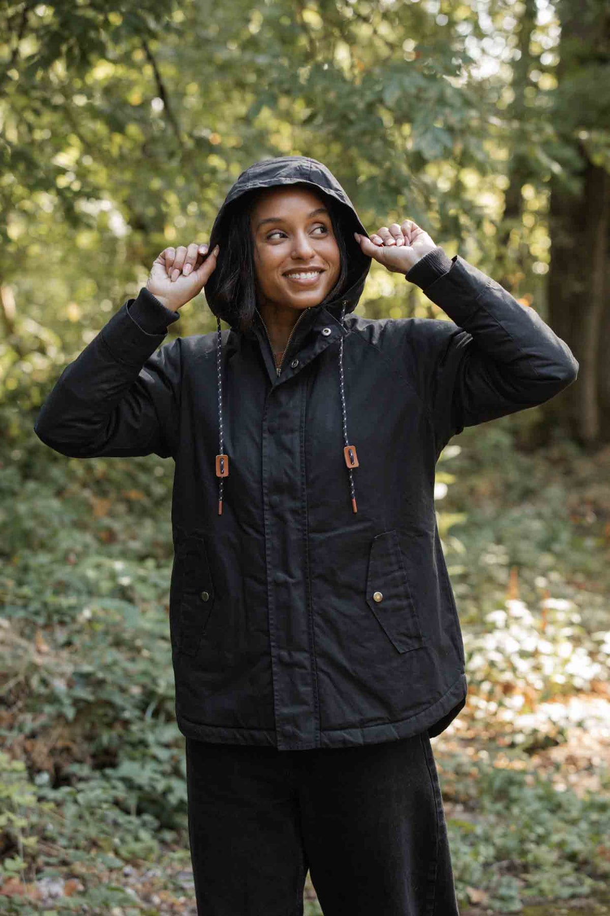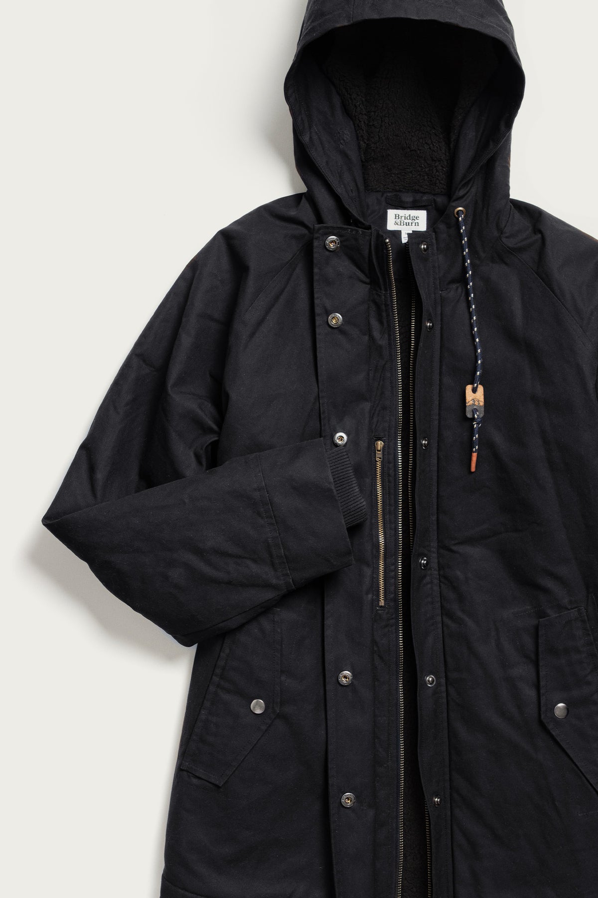 Our signature hooded waxed canvas parka. Designed to keep you comfortable in cold, wet weather, the Sequoia combines the best of old and new outerwear technology. We paired a shell made of reliable 100% British Millerain waxed cotton with a fleece lining that delivers the shearling look but with breathability and ease of care. Modern design details such as custom embossed cord stops, hidden ribbed cuffs, and dual-entry hand pockets add interest to this classic shape while creating a refuge from the harshest weather. The waxed shell will patina over time, giving each jacket a look all its own.