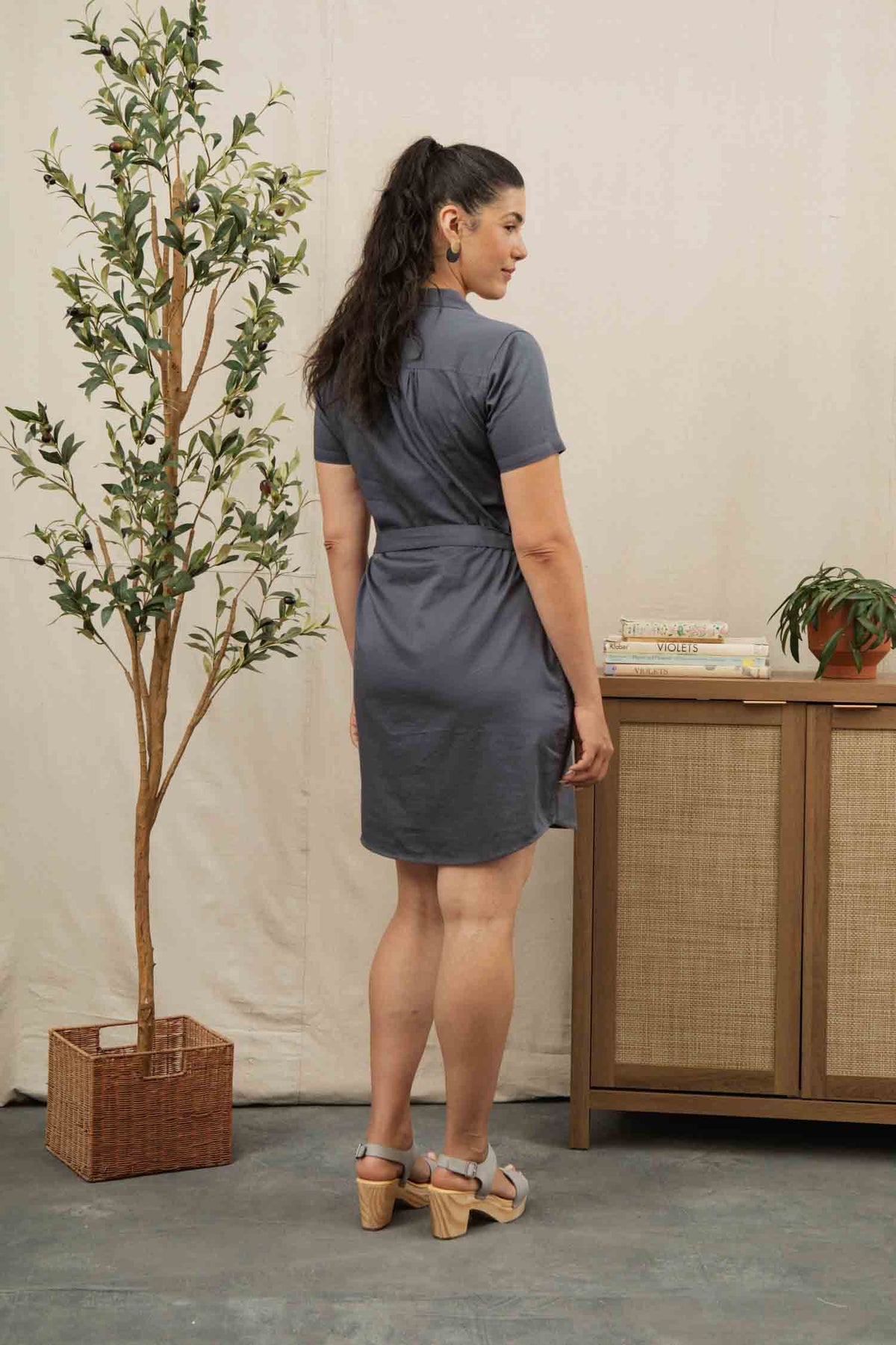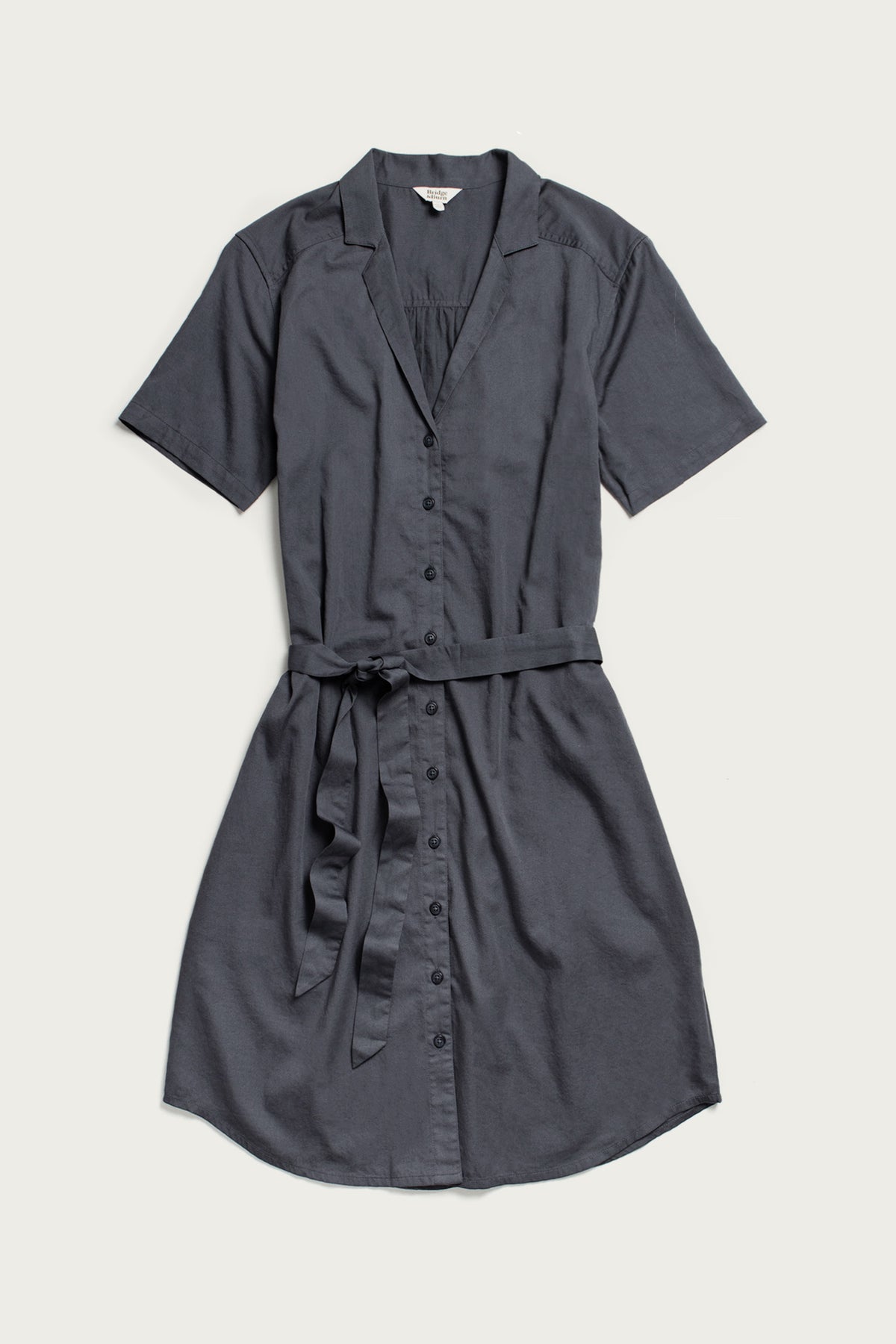 The Sofia is a self-belted button front dress with short sleeves that hits at or just above the knee. It features on seam pockets, gathering at back yoke, and a flat collar. Crafted from breathable organic cotton, this shirt drapes nicely and will keep you comfortable all day long. It's lightweight and wrinkle-resistant, perfect for tossing in your bag for weekend getaways or an evening out.