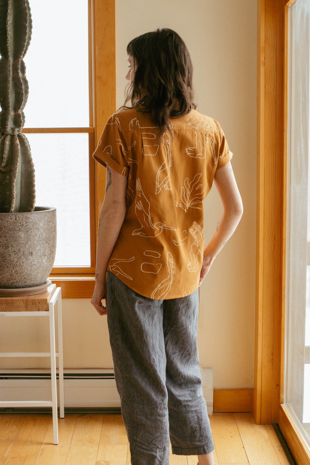 - Relaxed fit button-up