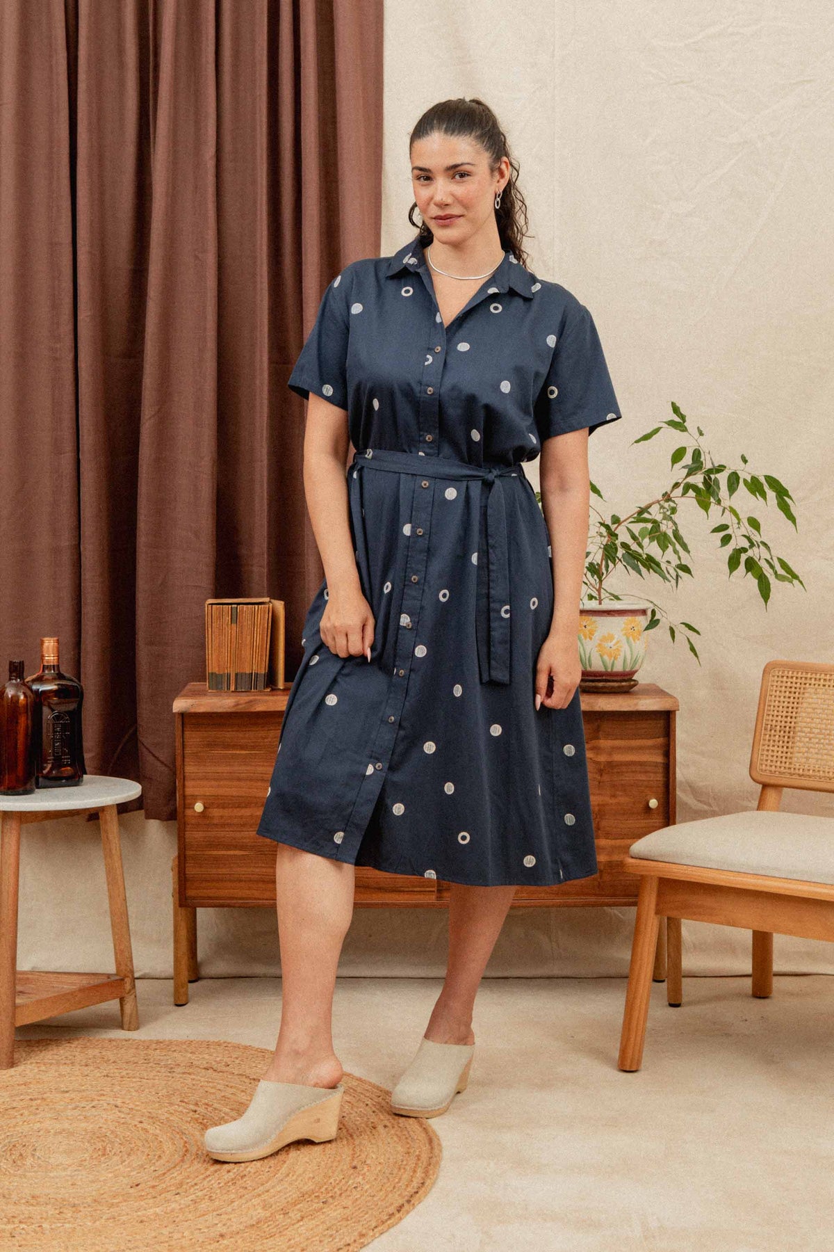 The Sylvie Dress channels effortless style with its relaxed, slightly oversized silhouette inspired by classic menswear tailoring. This shirtdress features a roomy skirt, functional pockets, and a self-belt for easy styling versatility. The knee-grazing length offers polished coverage while maintaining that comfortable, lived-in feel. Perfect for dressing up or down, it's the kind of piece that works as hard as you do.