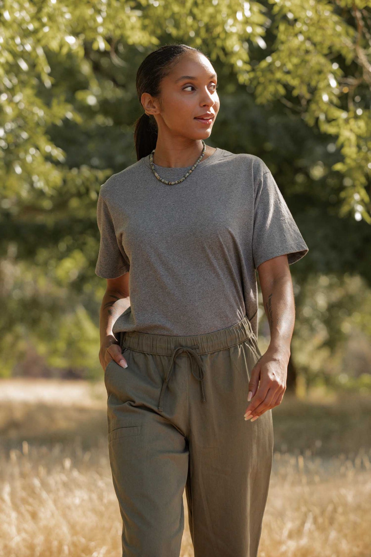 Finally, a sustainable tee that checks all the boxes. Crafted from a durable midweight recycled cotton blend, this tee is breathable enough for warm beach days and substantial enough for crisp fall afternoons. Our soft, slightly textured jersey fabric boasts the same beloved broken-in feel as your favorite vintage tee, and is sure to last even longer. A tried-and-true elevated essential.